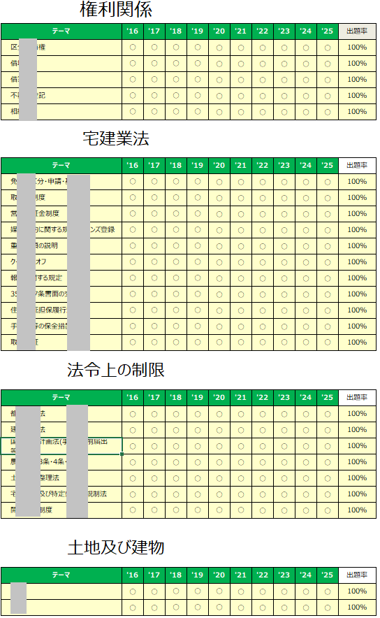6月から8月まではとにかく権利関係の問題を全問正解できるよう努め、9月は宅建業法、10月に入ってから法令上の制限と税・その他を勉強し始めました。