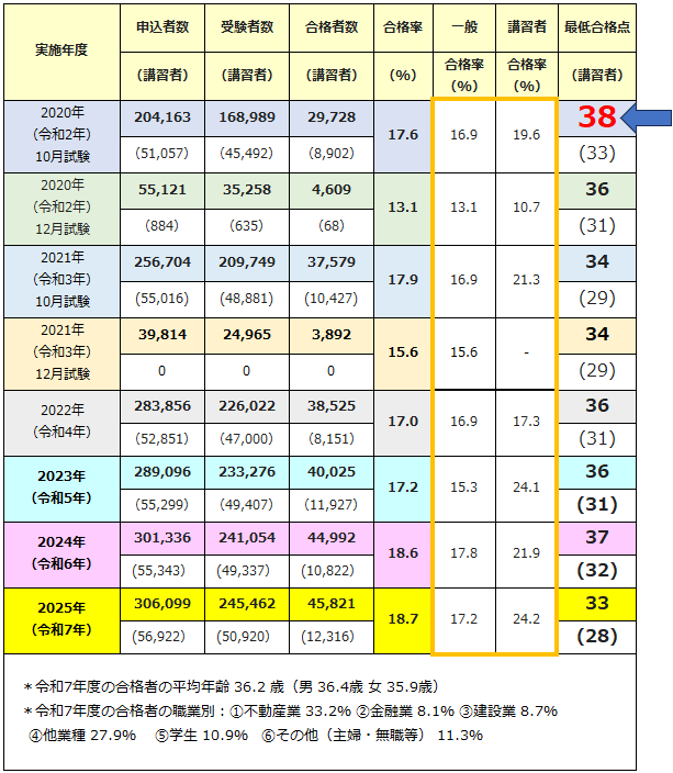 不合格になる人には共通した原因があります!! ・暗記が合格への近道だと思っている ・国語が苦手(設問読解に自信がもていない) ・設問場面を想像(イメージ)するのが苦手 受験者の大多数が、近所の書店で参考書や問題集を購入し、独学していますが、独学合格は至難の業です。 独学は暗闇の中を電灯もつけずに走行するような危険行為。もしくは、ガイド無しで、深い森の中に入っていくようなものです。 そんなことをしていたら、何年も森の中を彷徨い続けることも。 特に民法中心の「権利関係」科目で、設問の述べている意味がよくわからず試験を断念してしまう人が後を絶ちません。 どんなに知識があっても、質問の意味が分からなければ、正しい回答を当てはめられません。 大成する人は皆、プロから学ぶものです。一流のスポーツ選手や芸術家も指導者から基礎をしっかり学び、成功しています。 それが、合格にたどり着ける究極の近道だと知っているからです。 高校受験や大学受験のために、学校や塾で教師や講師(受験プロ)から学んだはずなのに、国家資格試験の勉強だけ独学というのは、いかがなものでしょうか。 この教材は、たった19日で40点以上の高得点で一発合格できた私自身の経験に基づき作成された驚速学習法です。 あなたが学生時代にやっていたような勉強法で、たった19日で合格するのは不可能です!!ライバルも大勢います!! この試験は、学校の授業のように先生が黒板(ホワイトボード)で説明した内容だけが、出題されるわけではないからです!! つまり、・・・ 市販テキストに掲載されている内容だけ覚えれば合格できる、と考えているなら、非常に危険です。 2024年試験の合格率は18.6%でしたが、受験申込者数との対比でみれば、合格できたのは申込者のうち、たった13.8%だけ。