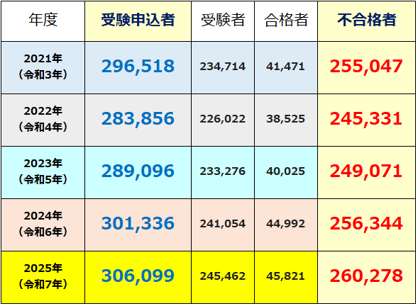| <2025年(令和7年)試験の状況> 受験放棄者数:60,637人(申込者数-受験者数)
