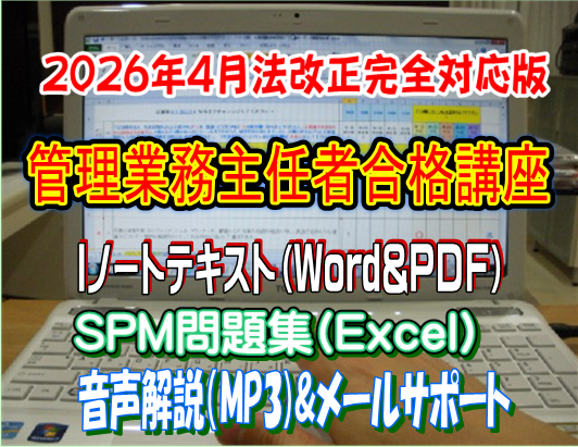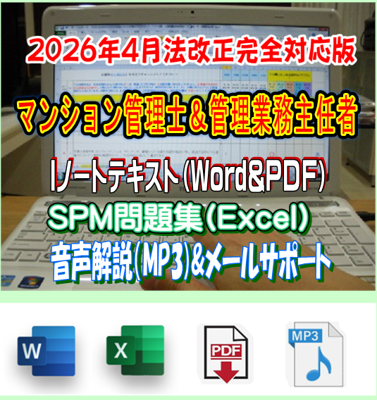 マンション管理士試験も管理業務主任者試験も、マンション管理のスペシャリストを誕生させるための難関国家試験です。 確かに合格率だけを見れば難関ですが、勉強の仕方一つ変えるだけで成績・成果は飛躍的にアップします。 当事務所のIノートテキストとSPM問題集は、マイクロソフト社のワード、エクセルおよびPDFファイルから構成されています。 パソコンを使って学習していきますが、その操作はいたって簡単。複雑な操作はありませんので60歳、70歳代の方からもたくさんのご注文をいただいております。 特に過去の出題を徹底分析して作成されたSPM問題集は、すべてが1問1答式になっており、それぞれの設問について、必ず「正誤判断」を求められます。 これにより、知識の取りこぼしを防ぐことができるのです!! 最近の出題傾向では、「以下の設問の中に正しい(間違っている)ものはいくつあるか?」といったものが目立ちます。 「どれが正解か?」なら消去法という手もありますが、「いくつあるか?」ですと、すべての設問に対する知識が無ければ対処することができません。 しかし、普段から1問1答式問題集で訓練している方なら、このような問題も難なくクリアできます。 また、SPM問題集は、設問−解答−解説がすべて横並びに配置されているため、記憶力アップにもつながります。 設問、解答、解説が離れた位置に配された問題集では、あなたの集中力は極度に損なわれます。 目の眼球移動は集中力、記憶力と密接な関係があるからです。 難関試験に合格するためには専門スクールに通わなければ無理だと言う人がいますが、それは全く違います。 スクールに通わなくても、高額な通信教材を購入しなくても、勉強方法をちょっと工夫するだけで、合格圏に入ることは可能ですし、短期間で合格することもできます。 特に時間が無い人ほど、限られた時間の上手な活かし方を考えるべきです。 ダラダラ長時間かけて勉強しても、高額な教材を購入しても合格できない人は、数えきれないほどいます。 しかし、この試験は自宅学習で十分、合格できますし、費用もかけずに合格できるのです。 現に毎年、Iノート&SPMを使って合格される方が大勢います。合格者の中には60歳以上の方も数多く含まれております。 年齢を重ねることで記憶力が減退するという通説も、脳科学的には無いそうです。 暗記力と記憶力は異なります。記憶力には「理解」が伴います。マンション管理士、管理業務主任者試験に求められる法制度に対する知識は、誰でも知っている内容が多く含まれています。 何故なら「住」に関する問題は、人として生きていく上で欠かせない要素だからです。屋根の無い空間で生活している人はほとんどいません。 「住居」があれば、意識せずとも自然と身についた建物知識もあるはずです。 あなたが既に身につけている一般常識にプラスアルファの専門知識を加えるだけで、「合格」はすぐに見えてきます。 Iノート&SPMは、一流のマンション管理士、管理業務主任者を教育するための教材ではありません。 あくまで、「試験に合格するため」だけを目的に作られています。ですので、資格取得後に実務として必要な知識は記載しておりません。 それは試験合格に必要な知識と、やや異なるからです。 試験では実務に関するものは出題されません。求められるのは、法的な基礎知識です。 この教材は「とにかく、資格だけ先に欲しい」と割り切れる人にこそ、最適な教材といえます。資格を取得するには、試験に出る個所だけ正解できれば合格できます。 時間は有限ですので、限られた勉強時間はすべて、試験に出るところに注いでください。 資格を取得しなければ、スタートラインには立てません。このスタートラインとは、稼ぐための出発地点です。 資格を取得したら、稼いでください。 稼ぐとは、誰かの役に立つということです。求められる人のところには、自然とお金も集まってきます。 当事務所は、一人でも多くの方にスタートラインに立つための「切符」をお渡しできるよう、全力でサポート致します。 教材を売ったら終わり・・・ではありません。教材をご提供してから試験直前まで、共にあなたと一緒に合格を目指していきます。 <資料> 最近の試験では、下記のような問題が管理業務主任者試験では、なんと50問中12問も出題されています。 このような問題では他の肢との比較による消去法は通用しません。だからこそ、SPM問題集のような一問一答式で日頃から訓練するのが有効なのです。